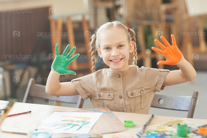 Забавная девушка в художественной студии