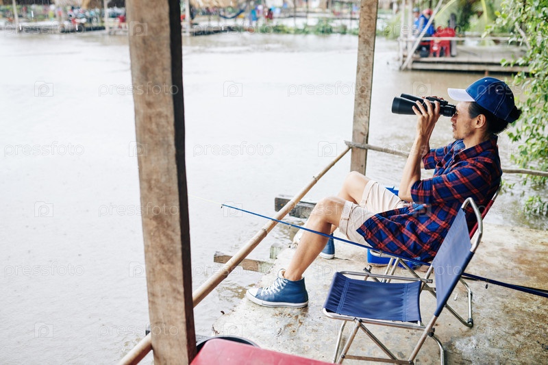 Зрелый рыбак на озере