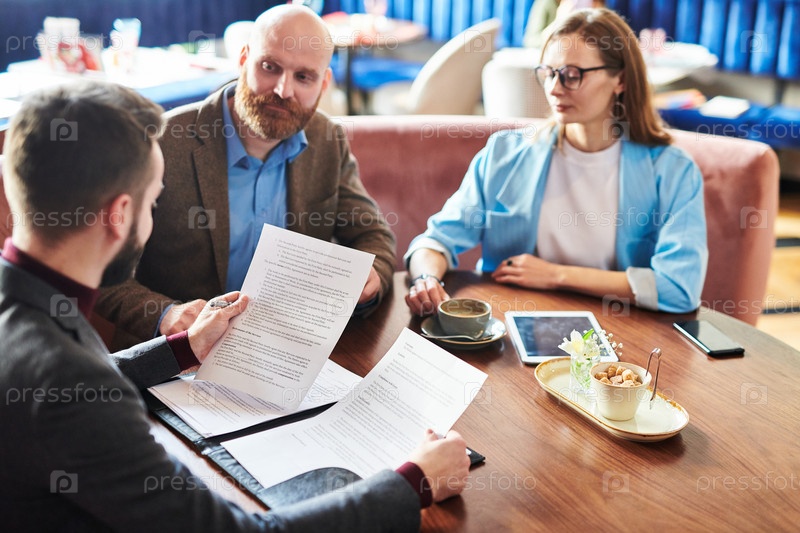 Читание соглашения на встрече с деловыми партнерами