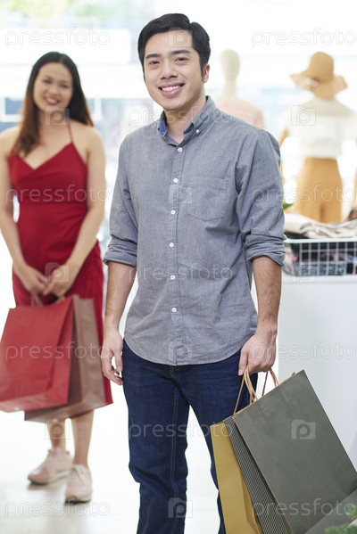 Красивый мужчина с сумками для покупок