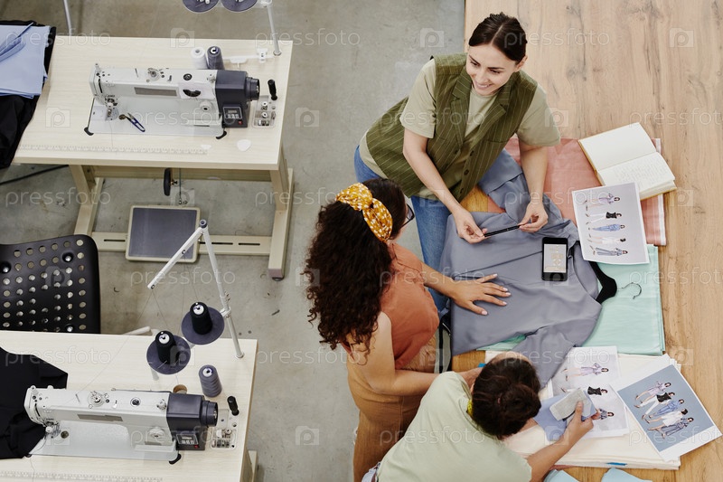 Группа современных швеек обсуждает новую модную коллекцию