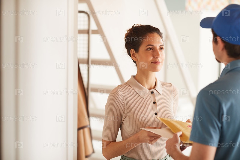 Женщина получает письма от почтальона