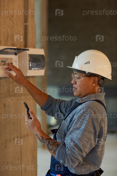 Женщина-электрик проверяет коммутатор