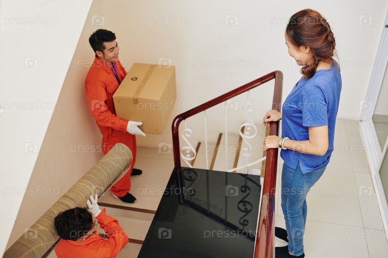 Переселенцы несут вещи в новой квартире