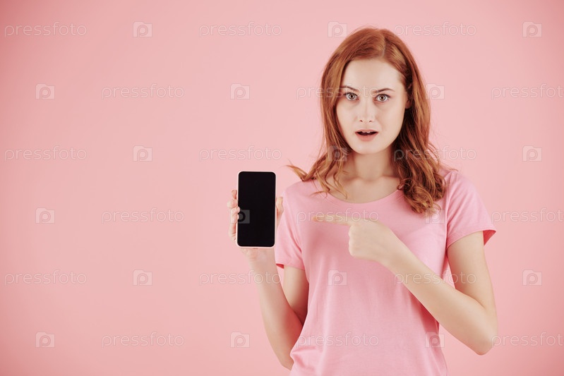 Женщина, указывающая на смартфон