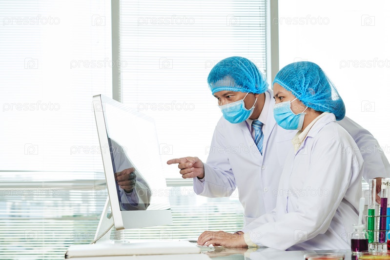 Работники лаборатории обсуждают детали исследования
