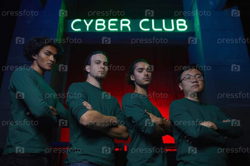 Команда геймеров в киберклубе