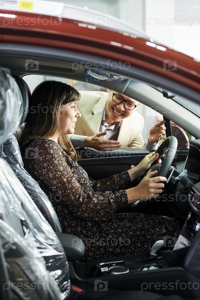 Женщина тестирует новый автомобиль