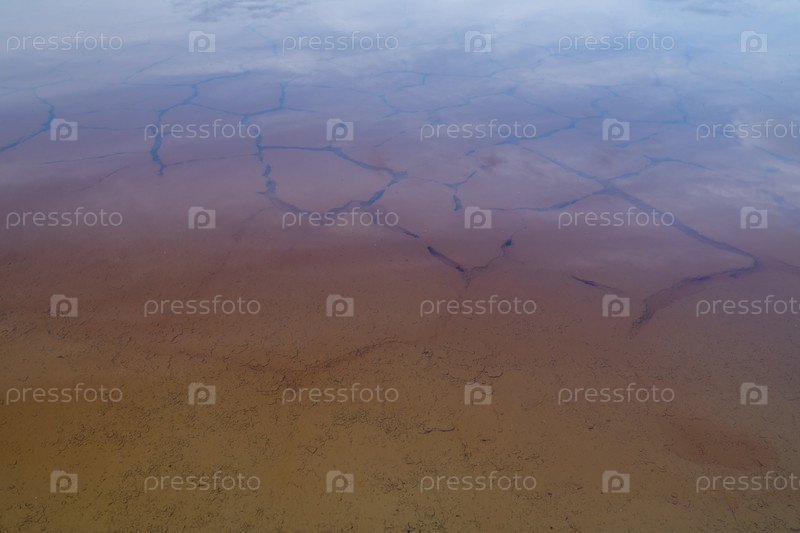 Грязная вода с загрязненной и трещинами почвы или глины под ней на токсичной территории