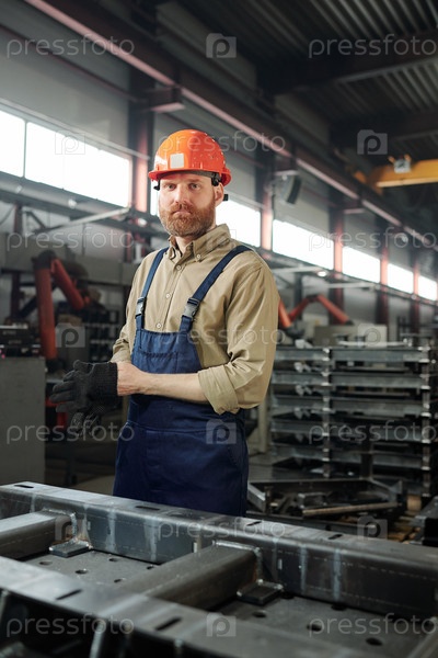 Производственный работник надевает перчатки