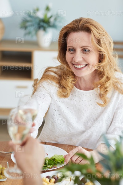 Элегантная зрелая женщина наслаждается ужином