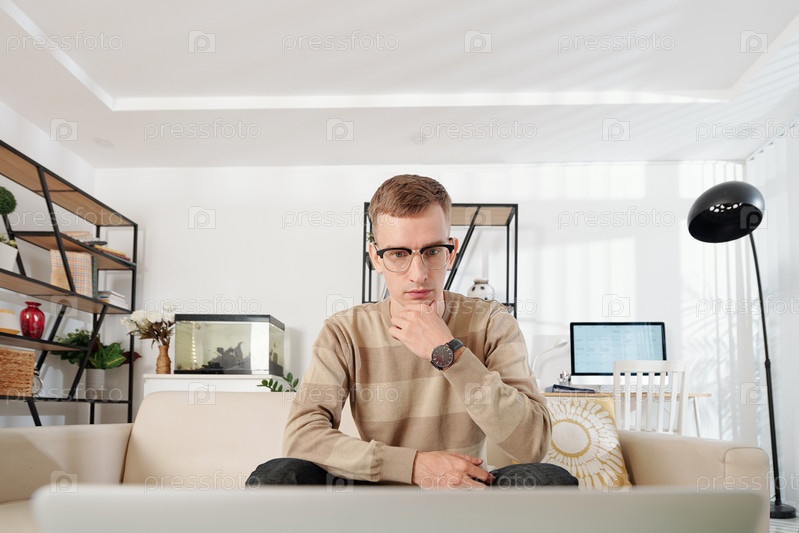 Пенсивный человек читает статью