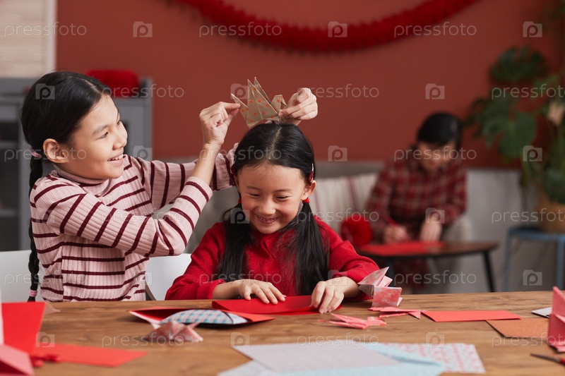 Две азиатские девушки веселятся