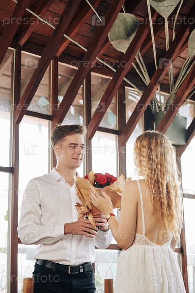 Мужчина дарит цветы своей девушке