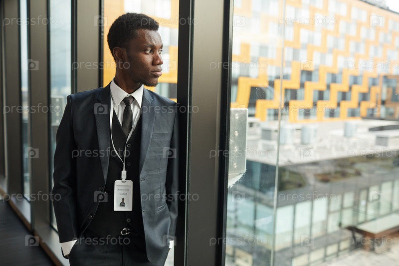 Африканский бизнесмен, стоящий на посту