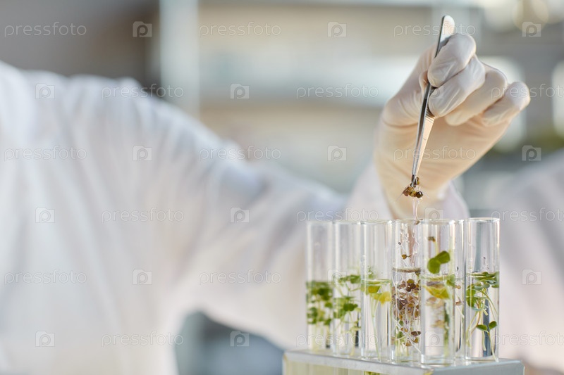 Близкий снимок ученого, проводящего эксперименты с растениями