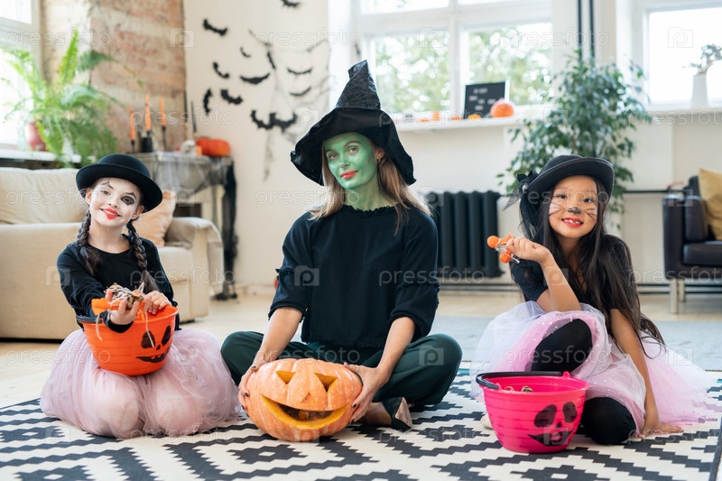 Три красивых ведьмы на вечеринке Хэллоуина