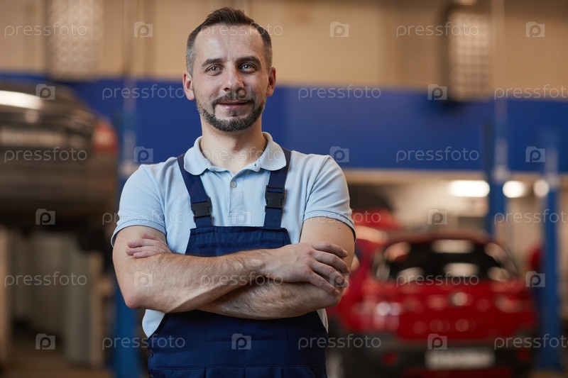 Механик позирует в автомагазине