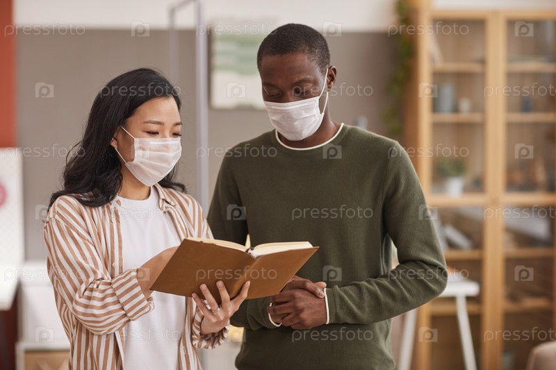 Два офисных работника, носящих маски