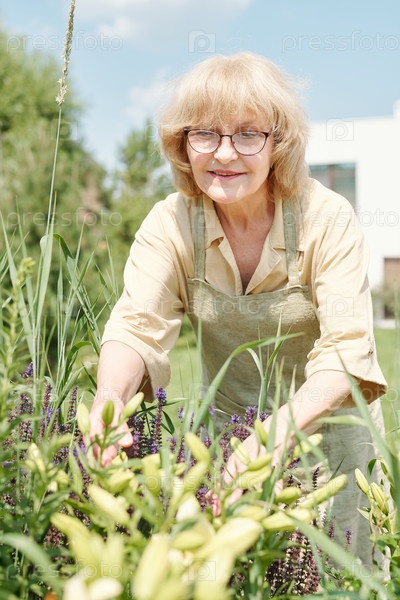 Зрелая женщина, работающая в саду