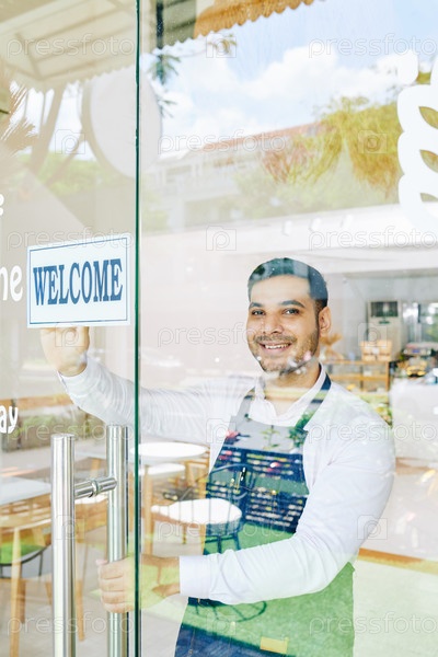 Улыбающийся владелец небольшой пекарни