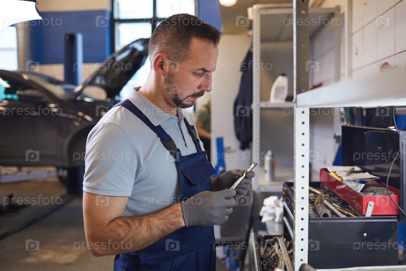 Механик выбирает механические инструменты