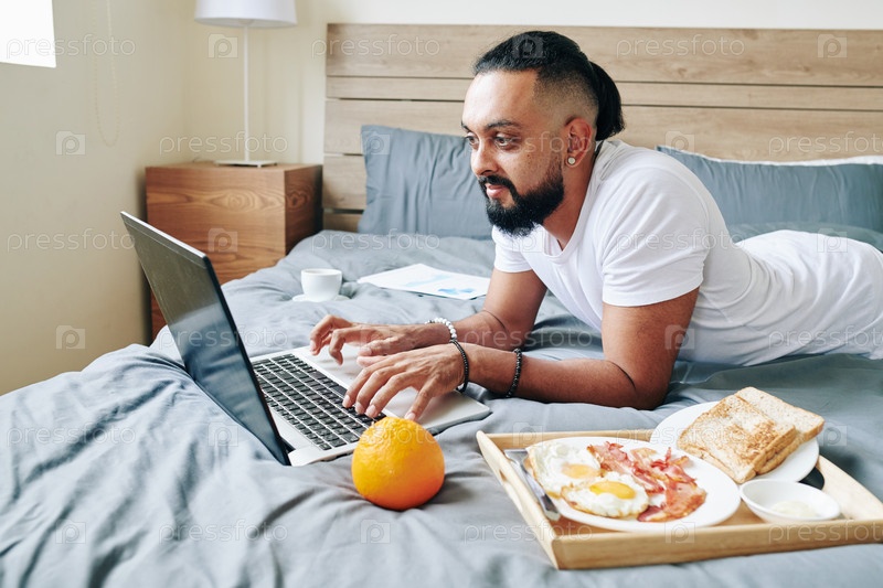 Мужчина, кодирующий в постели