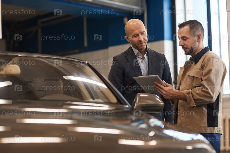 Бизнесмен проверяет машину