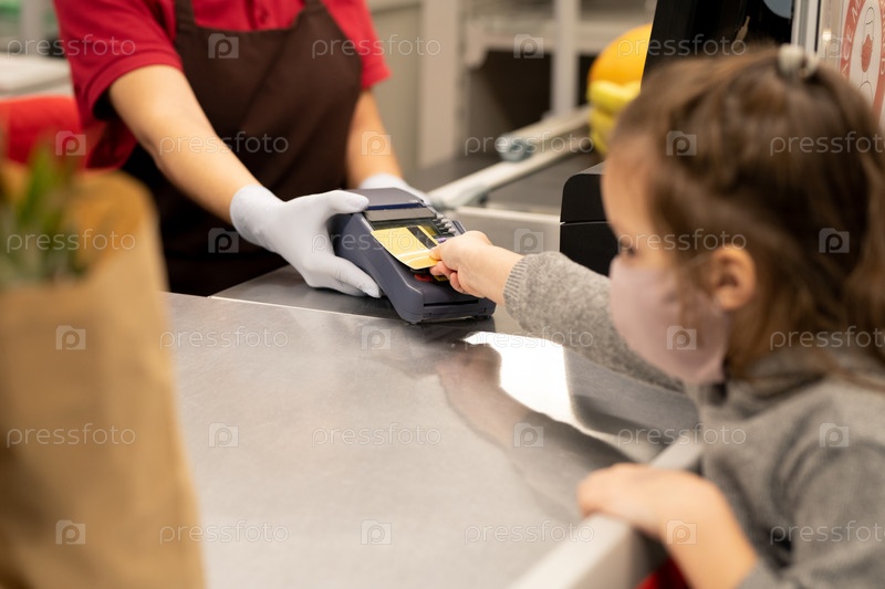 Рука зрелого мужчины со смарт-часом, держащей запястье над платежным автоматом