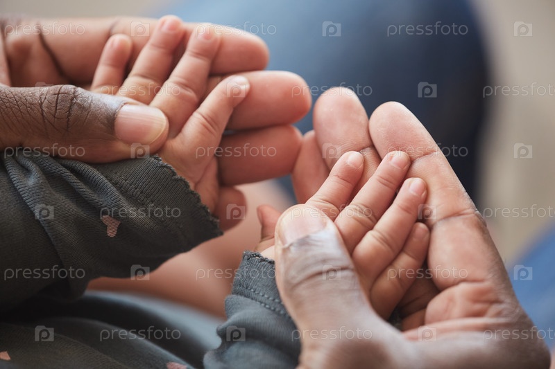 Отец держит ребенка за руки Закройте
