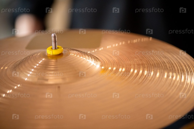 Круглый золотой цветный кимвал как часть барабанного набора современного барабанщика
