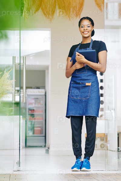Владелец кафе с цифровым планшетом