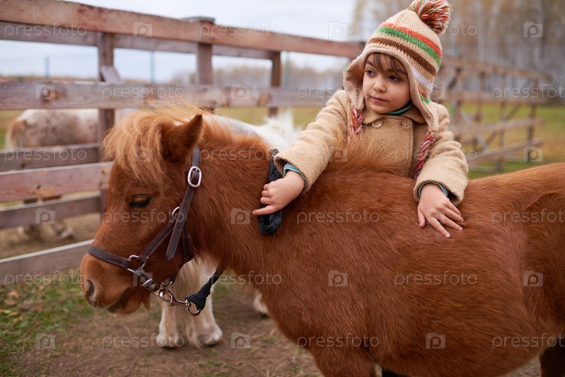 Маленький ребенок проводит время на лошадиной ферме