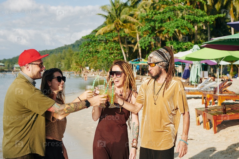 Друзья наслаждаются пляжной вечеринкой