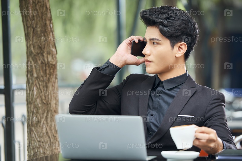 Красивый бизнесмен разговаривает по телефону