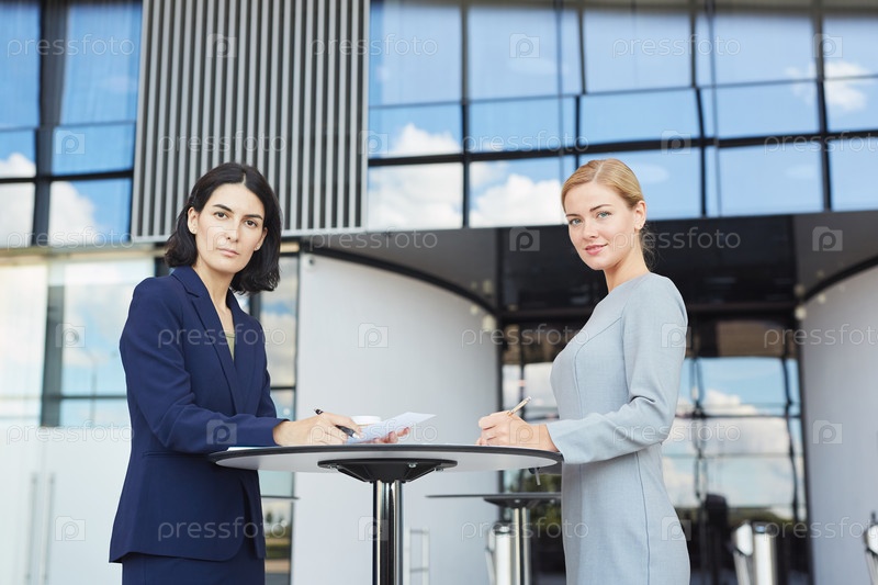Две успешные бизнес-женщины встречаются за столом в кафе