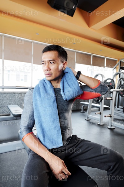 Усталый спортсмен в тренажерном зале