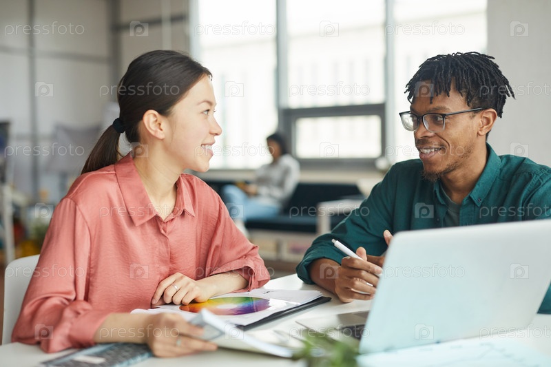 Пара дизайнеров, работающих в офисе