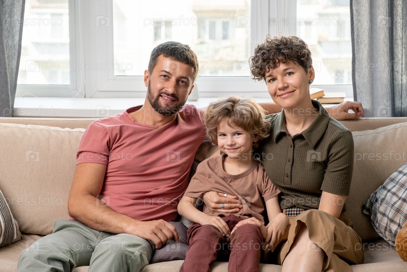 Современная молодая любящая семья из матери, отца и маленького сына