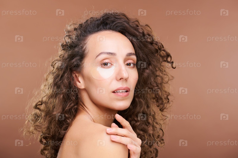 Красивая темнокожая и кудрявая самка с омолаживающими пятнами под глазами