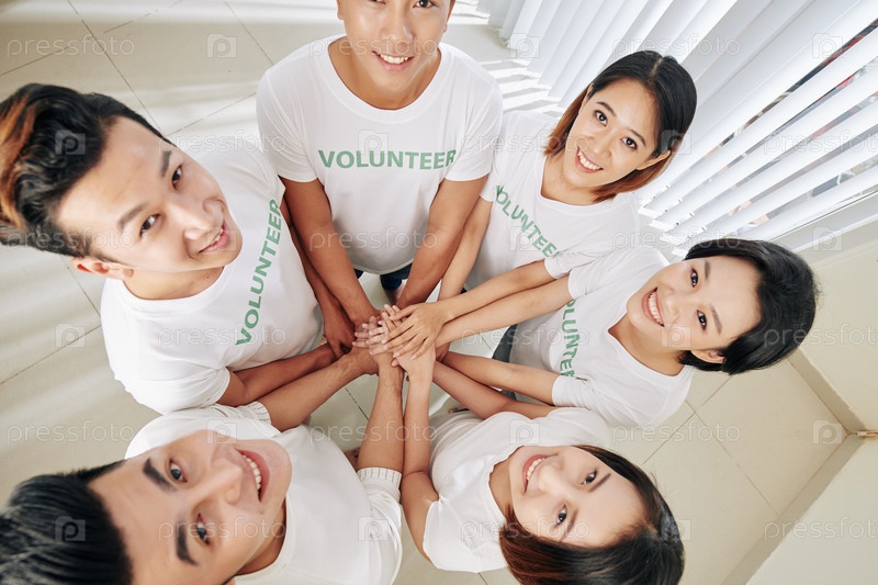 Волонтеры складывают руки