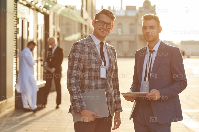 Два бизнесмена стоят на улице