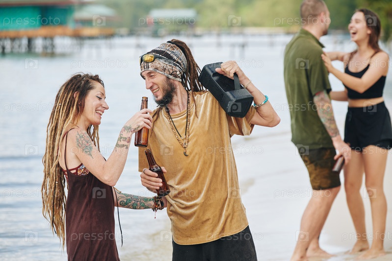 Пара, слушающая музыку на пляже
