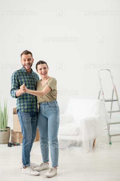 Счастливая пара в новой пустой квартире