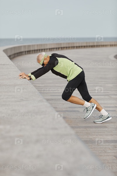 Мужчина, носящий спортивный костюм и занимающийся на морском берегу