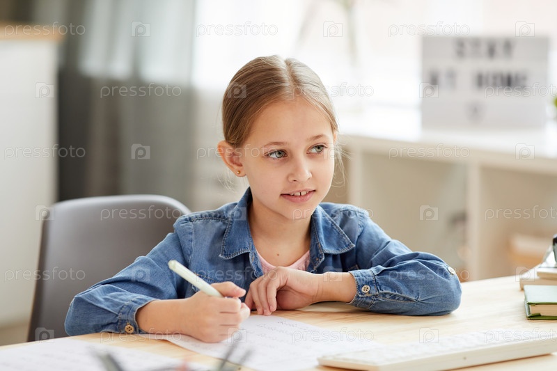 Милая девочка учится дома
