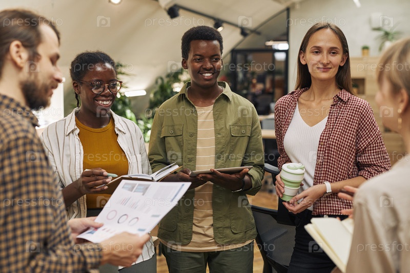 Команда обсуждает проект в Office Creative
