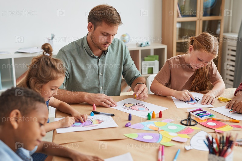 Дети делают космические ракеты в классе искусств и ремесел
