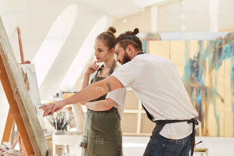 Молодая пара рисует в художественной студии