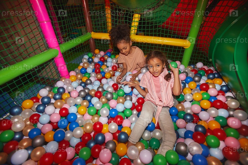 Девушки играют в сухом бассейне